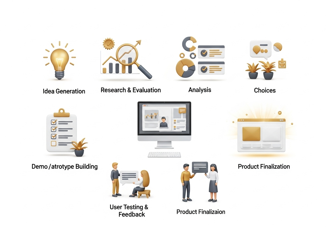 Dựa trên quy trình thiết kế website hiện đại – được xem là xu hướng sáng tạo hàng đầu trên thế giới, một website mang dấu ấn ý tưởng độc đáo sẽ được phát triển qua các bước sau: